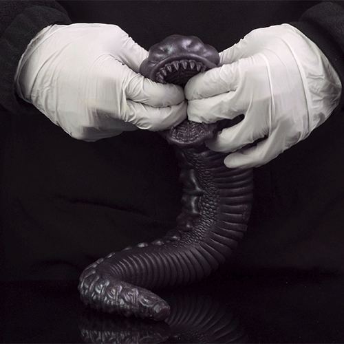 Dare to unlock what’s hidden in plain sight. Apply water-based lubricant to the serpent’s maw and guide yourself inward, where alien ridges and soft silicone contours create a deep, rhythmic pressure that builds intensity with every movement.