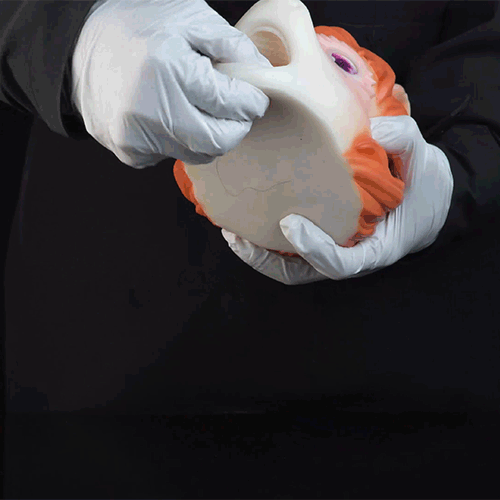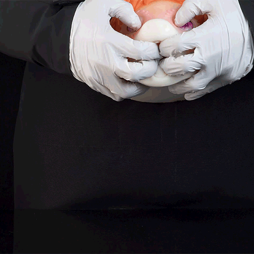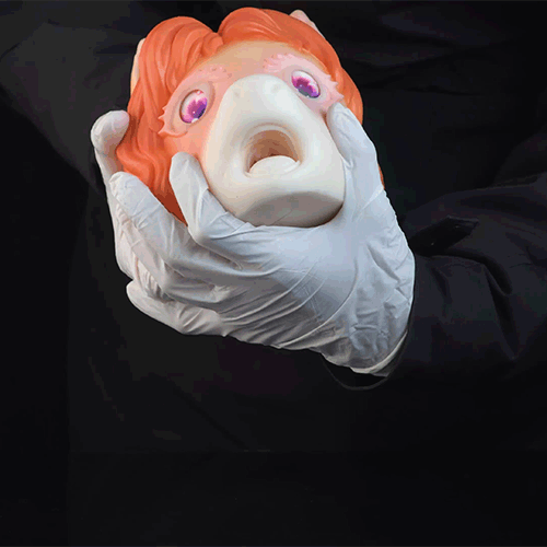 • Apply water-based lube generously, then slowly explore the hidden mouth entrance. The ribbed, tongue-like textures begin to massage and envelope your shaft for a deep, realistic blowjob sensation.